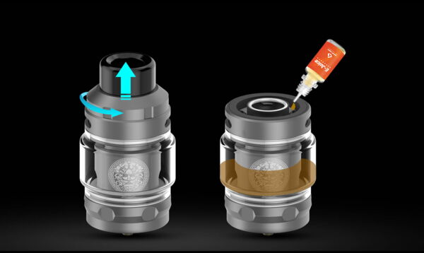 Der Zeus Verdampfer von Geekvape bringt hervorragenden Geschmack und gute Dampfentwicklung mit. Er hat einen Durchmesser von 26mm und verfügt oben über eine stufenlos regulierbare Luftzufuhr (Airflow). Zum Tank von Zeus werden 2 Gläser geliefert, einmal ein Bulbglas für 5ml und einmal ein Ersatzglas für 3.5ml. Das E-Liquid wird von oben nachgefüllt. Durch eine Vierteldrehung kann der Tankdeckel geöffnet werden. Abgerundet wird der Verdampfer durch ein gestecktes 810er Mundstück. Durch den grosse Durchmesser vom Mundstück eignet er sich eher für Lungendampfen (Lungendampfen oder Backendampfen).